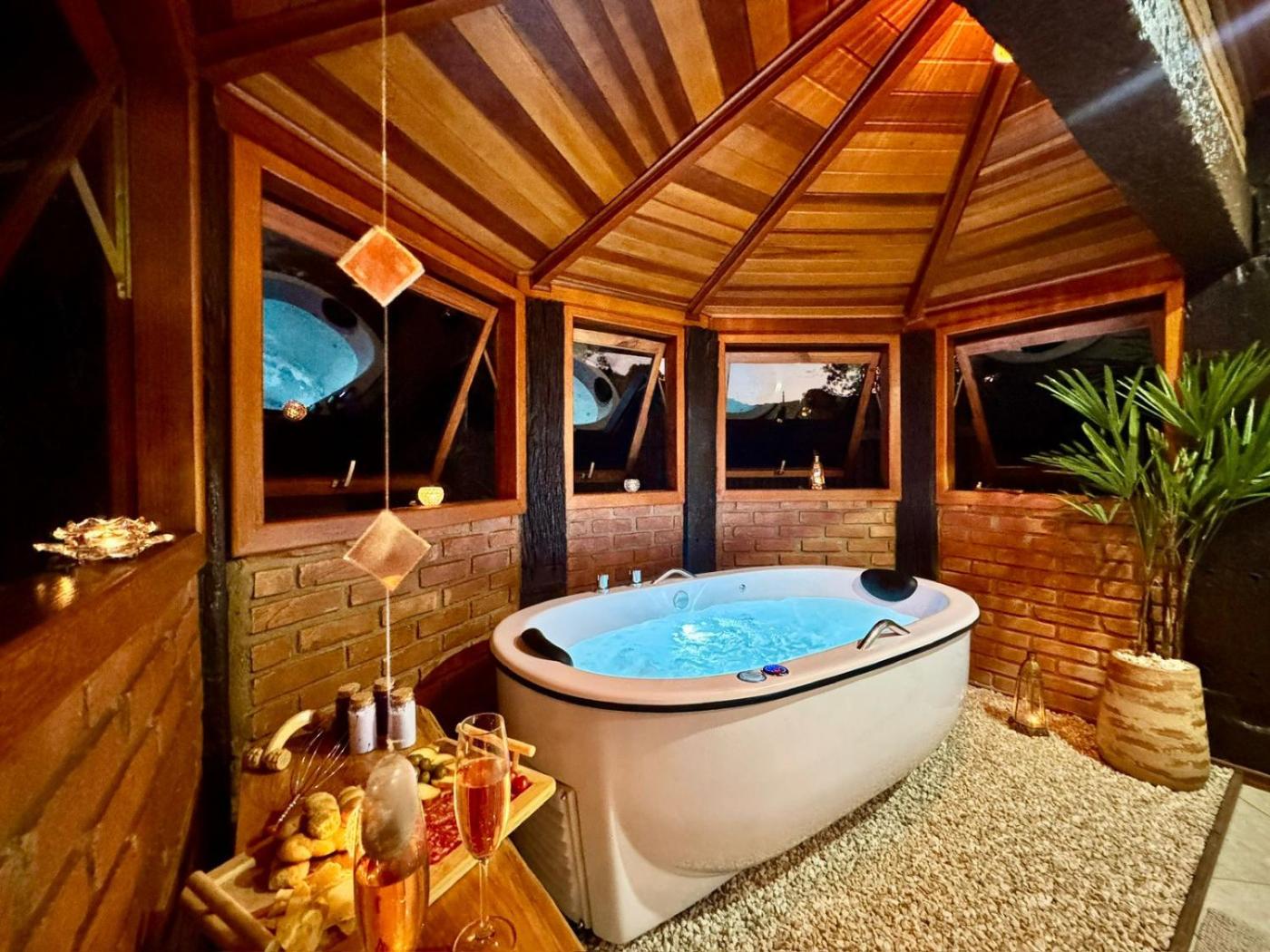 Chalé. This chalet features a hot tub and a fireplace. The chalet has 1 bedroom and 1 bathroom with a bath and free toiletries. Guests will find a stovetop, kitchenware, an oven and a tea and coffee maker in the fully equipped kitchen. The chalet also comes with a barbecue. This chalet features a minibar, flat-screen TV with streaming services, garden views, as well as winechampagne for guests. The unit has 1 bed.