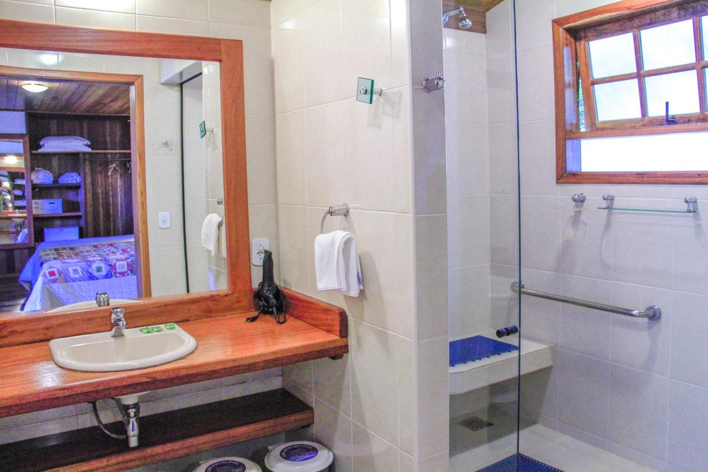 Chalé Superior. Featuring a private patio with a hammock, this chalet offers a bedroom and a living area with independent access to the hot tub. It also offers hot and cold Split air conditioning. ;